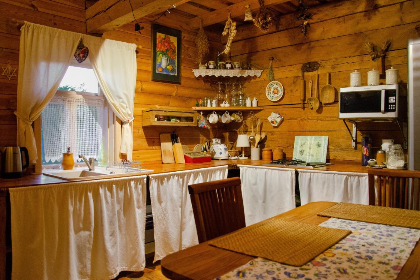 Dom z 1 sypialnią. The fireplace is the standout feature of this holiday home. Boasting a private entrance, this holiday home comes with 1 living room, 1 separate bedroom and 1 bathroom with a bath and a bidet. Guests will find a refrigerator, a dishwasher, kitchenware and a toaster in the kitchen. The holiday home also includes a barbecue. The holiday home has a washing machine, a tea and coffee maker, a seating area as well as a terrace with garden views. The unit has 2 beds. Dom wakacyjny - 4 osobowy. Powierzchnia pokoju ok.: 80 mkw.